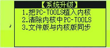 下面以PC1000a为例,介绍使用方法。用文件传输助理把PC-TOOLS传入文曲星后,进入程序,其初始密码为snoopy,其界面见图1,选择“2.系统设置”,“5.清除密码”(图2),进入图3选“2.清除内核中PC-TOOLS密码”,之后退出。再次进入,会要求输入新密码,设置完密码后,选“2.系统设置”(图1),“7.系统升级”(图2),“1.把PC-TOOLS植入内核”(图3)。记住此时系统要有足够的剩余空间,同时不要把密码忘了。这样就可以把系统中的PC-TOOLS删除,以节省空间。以后如想进入PC-TOOLS,只须同时按下“→”和“时间”即可。而按下“输入法”和“时间”可进行截图。
