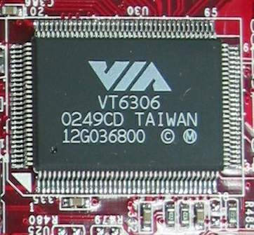 图6是板载的VT6306芯片。通过VIA的这块芯片,实现对IEEE1394接口的支持。可以看到,这块芯片是CD版的。
