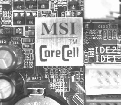 图7中这个金属包装的芯片CoreCell是微星自己开发的智能监控芯片,可以对系统的温度、风扇转速、电压等进行监测,并且还可以根据具体情况(比如温度)来调节风扇的转速。这样可以让系统在工作时由于风扇产生的噪音尽可能减小而不会对散热造成太大影响。此外,该芯片还能够减少系统不必要的功耗,从而达到节能的效果;让系统更稳定地长时间工作;让系统的性能更加强劲。
