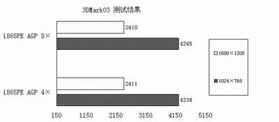从图8、图9、图10、表3具有一致性的结果可以看出,在AGP性能上,i865PE表现不错,不过AGP 4×与AGP 8×模式下的性能差距实在太小,完全可以忽略。在Quake3测试中,在1024×768分辨率下,这套系统获得了333FPS的高分,这对于Radeon9700标准版来说应该是最高的得分了,这与极高的FSB和双通道DDR400带来的高内存带宽也是不无关系的。