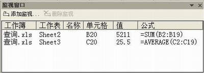 提示:当包含有指向其他工作簿的单元格被监视时,只有当所有被引用的工作簿都打开时,才能在“监视窗口”的列表中显示出来。