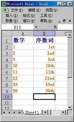 将英文的基数词转换成序数词是一个比较复杂的问题。因为它没有一个十分固定的模式:大多数的数字在变成序数词都是使用的“th”后缀,但大凡是以“1”、“2”、“3”结尾的数字却分别是以“st”、“nd”和“rd”结尾的。而且,“11”、“12”、“13”这3个数字又不一样,它们却仍然是以“th”结尾的。因此,实现起来似乎很复杂。其实,只要我们理清思路,找准函数,只需编写一个公式,就可轻松转换了。不信,请看:“=A2&IF(OR(VALUE(RIGHT(A2,2))={11,12,13}),"th",IF(OR(VALUE(RIGHT(A2))={1,2,3}),CHOOSE(RIGHT(A2),"st","nd","rd"),"th"))”。该公式尽管一长串,不过含义却很明确:①如果数字是以“11”、“12”、“13”结尾的,则加上“th”后缀;②如果第1原则无效,则检查最后一个数字,以“1”结尾使用“st”、以“2”结尾使用“nd”、以“3”结尾使用“rd”;③如果第1、2原则都无效,那么就用“th”。因此,如图13所示,基数词和序数词的转换实现得如此轻松和快捷。