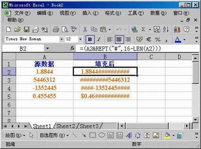 比如,我们要在图14中A2单元格里的数字结尾处用“#”号填充至16位,就只需将公式改为“=(A2&REPT("#",16-LEN(A2)))”即可;如果我们要将A3单元格中的数字从左侧用“#”号填充至16位,就要改为“=(REPT("#",16-LEN(A3)))&A3”;另外,如果我们想用“#”号将A4中的数值从两侧填充,则需要改为“=REPT("#",8-LEN(A4)/2)&A4&REPT("#",8-LEN(A4)/2)”;如果你还嫌不够专业,要在A5单元格数字的顶头加上“$”符号的话,那就改为:“=(TEXT(A5,"$#,##0.00")&REPT("#",16-LEN(TEXT(A5,"$#,##0.00"))))”,一定能满足你的要求。