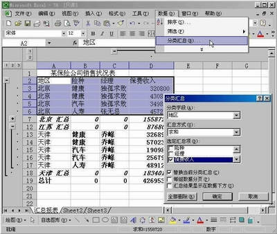 和Word的大纲视图一样,Excel这个功能主要用于处理特别大的工作表时,难以将关键条目显示在同一屏上的问题。如果在一张表格上名目繁多,但数据类型却又有一定的可比性,那么我们完全可以先用鼠标选择数据区域(图19),然后点击“数据”菜单的“分类汇总”选项。并在弹出菜单的“选定汇总项”区域选择你要汇总数据的类别。最后,如图19所示,现在的表格不是就小了许多吗?当然,如果你还想查看明细的话,单击表格左侧的“+”按钮即可。