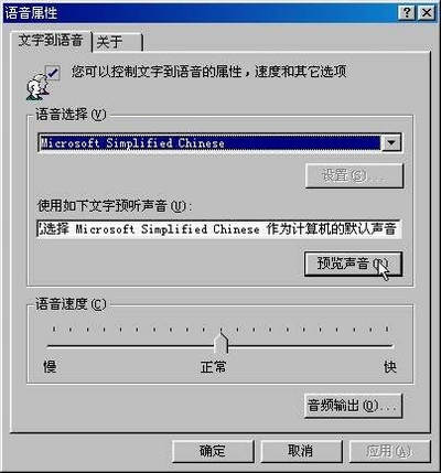 还有一点需要说明的是,如果你想调整Excel 2002中语音朗读的速度,可以在“控制面板”中双击“语音”图标,然后在“文字到语音”卡片上调整即可(图22)。
