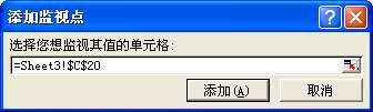 执行“视图→工具栏→监视窗口”命令,打开“监视窗口”(图7),单击其中的“添加监视”按钮,展开“添加监视点”对话框(图8),用鼠标选中需要查看的单元格后,再单击“添加”按钮。重复前述操作,添加其他“监视点”。