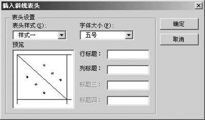 将插入点定位在单元格中,单击“表格→绘制斜线表头”命令,出现对话框(图1),单击“表头样式”下拉菜单选择一种样式(共有5种可选择),分别填入“行标题”(右上角的项目)、“列标题”(左下角的项目)和“数据标题”(中间格的项目)以及“字体大小”等,最后单击“确定”退出。删除斜线表头的方法是,单击要删除的斜线表头,当周围出现选定标记时,按Del键即可删除该斜线表头。
