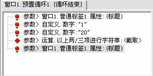 现在我们用文字模拟一下循环过程。首先,第一次循环,假设产生随机值为“8”,赋给当前项目号。由于物理第一行的行号为“0”,所以当前选择内容为“09”。取普通标签的标题,由于初始化值为“空”,所以把“空”字符、“09”、“-”三个字符进行连接,其结果再赋给普通标签的标题。这样第一次循环后,普通标签的标题为“09-”。第二次循环(在不考虑其他设置情况下),假设随机值为“13”,当前选择内容为“14”,这时普通标签的标题“09-”、“14”、“-”三个字符串进行连接,其结果再赋给普通标签的标题。标题结果为“09-14-”,依此类推。