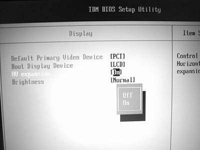 通过试验笔者还发现,不管HV expansion选项是处于“ON”还是“OFF”,都可以用Fn+F8来改变屏幕是否处于扩展拉伸状态,选“ON”的惟一好处就是设为“ON”后第一次进入系统时,如果分辨率是非标准的,会自动扩展成满屏状态。但自动扩展仅此一次,如果此时按下Fn+F8(即取消了自动扩展),以后把分辨率设为非标准状态,关机后再次开机进入系统,则屏幕仍会处于不满屏状态,不会因为HV expansion选项为“ON”而再次自动扩展成满屏。
