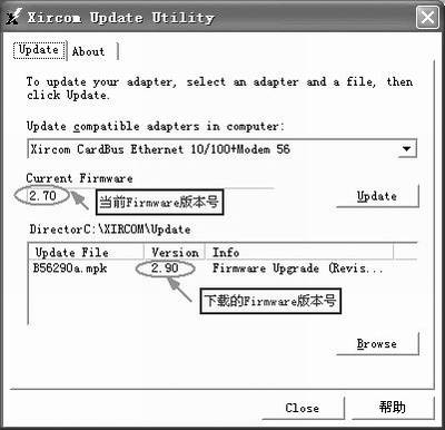 升级后用户会在保存Firmware文件的文件夹中发现“XUpgUt32”文件。运行它可以查看当前PCMIA卡的Firmware版本号(其界面同图3),确定已经升级到最新版本。