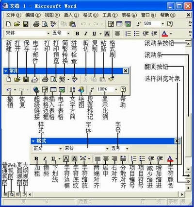 启动Word2000,程序默认展开“常用”和“格式”两个最为常用的工具栏就展现在眼前。点击工具栏上的相应按钮,即可对选中的字符和对象进行快捷操作,非常方便。同时,对编辑好的文档,我们可以通过点击窗口左下角的“视图”按钮,按不同的视图来浏览文档,也可以通过拖动右边和下边滚动条等按钮,来浏览窗口以外的文档内容。