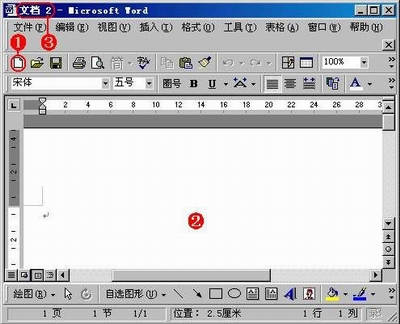 ①用鼠标左键单击“新建空白文档”按钮。②Word即刻新建一份空白文档,供你输入文档内容。③同时,系统以“文档1、文档2……”的形式,依次序给新建的空白文档进行命名。