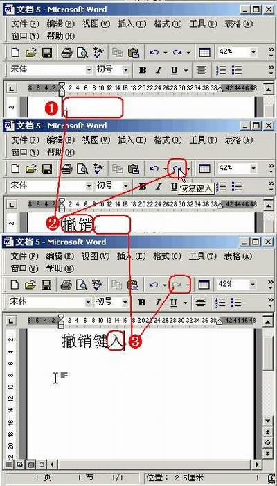 如果你发现刚才所进行的撤销操作有错误,可以通过反复按“恢复键入”按钮,依次恢复前面所进行的撤销操作。