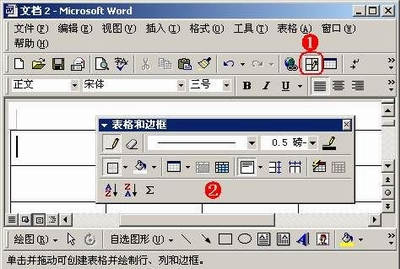 ①当需要编辑文档中的表格时,单击“表格和边框”按钮。②打开“表格和边框”工具栏,利用工具栏上的按钮,可快速对表格进行相应的操作。