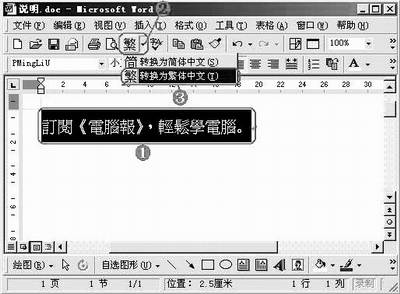 ①选中需要转换的文本,单击“中文简繁转换”按钮旁的下拉按钮。②在出现的下拉列表中,选中相应的转换项目(如“转换为繁体中文”),即可完成转换工作。