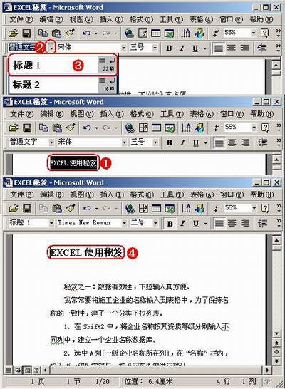 ①选定需要应用样式的文本。②单击“样式”右侧的下拉按钮。③在随后弹出的样式下拉列表中,选择需要的样式。④选择的样式被应用于选定的文本上。