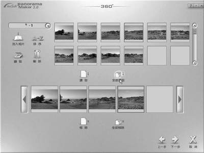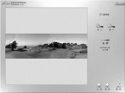 导入完成后单击“下一步”按钮,此时电脑会开始运算处理。运算完成后你会看到如图3所示界面,这里给了我们一个初步的效果预览图,如果不是很满意可以点击“微调”图标(图4)在弹出的窗口内对每幅图片具体融合的位置进行一下修整,最后单击“完成”退出制作界面。
