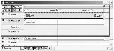 2.把“雷达.psd”拖到video2视频轨道上,把“manex.mov”放到video1视频轨道上,如图5。