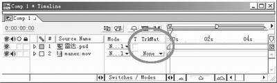 6.点击 “雷达.psd”这一图层前面倒立三角形,使其参数设置为对话框关闭。接着开始点击“manex.mov”这一图层上的TrkMat下面的None按钮,如图8。