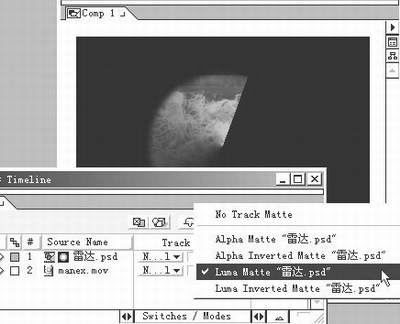 7.在弹出的菜单中选择Luma Matte“雷达.psd”,如图9。