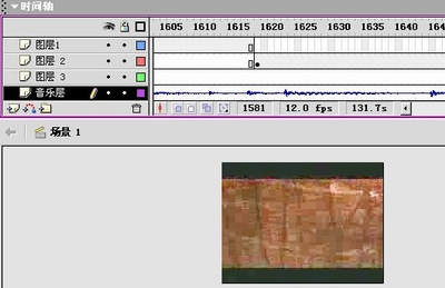 数码相机所拍的短片一般都是“哑剧”,为它加入背景音乐就更有必要了。新增一个图层,名为“音乐层”,选定该图层后把音乐从库中拖到场景即可。