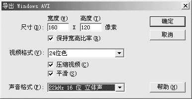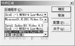 经过上面简单的几步,现在我们就可以把这些无声短片转化成一个有背景音乐的完整AVI文件了。执行菜单中的“文件→导出影片”命令,打开“导出影片”对话框,在“保存类型”选框中选“AVI视频文件”,输入文件名后保存,会出现如图3所示的设置对话框,“尺寸”最好保持不变,保持宽高比率;“视频格式”选24位色、压缩视频、平滑,“声音格式”可根据需要设置,采样率越高,音质越好。然后点击“确定”,进入图4所示的“视频压缩”选择对话框,选择其中的一个压缩程序进行压缩即可。如果你安装了《豪杰解霸3000》之类的播放工具,还可以在这里找到DivX压缩程序,用它可以获得较好的图像质量和较高的压缩率。每一个压缩程序还有不同的配置,一般我们不必多管,直接点击“确定”按钮就可获得我们需要的AVI文件了。