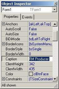 提示:“Object Inspector” 即是“对象检查器”,有关程序中涉及到的窗体及控件的属性均在这里设置。