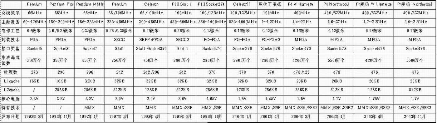 2000年,Intel推出了核心为Willamette的Pentium4处理器,采用了Socket 423插座,集成了256KB的二级缓存,支持更为强大的SSE2指令集,支持多达20级的超标量流水线,400MHz前端总线(100MHz×4),256KB~512KB的二级缓存,全新的超管线技术架构,起步频率为1.3GHz。随后Intel陆续推1.4GHz~2.0GHz的Willamette P4处理器,而后期的P4处理器均转到了针脚更多的Socket 478结构。
