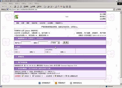和前几期介绍的MYSQL环境的VBB相比,Access环境的动网则有一个先天的优势,不存在什么数据导入。直接把全部与论坛相关的程序拷贝到论坛空间即可使用。最后安装完成的程序大致在5MB~6MB,效果如图1、图2所示。