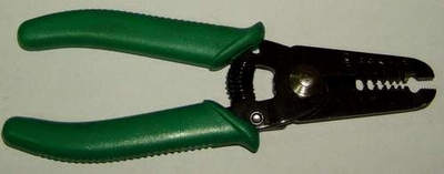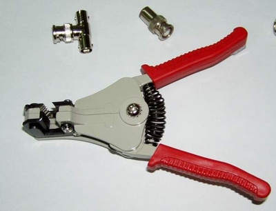 这种工具的特点是两用:剥线和去壳一气呵成。将同轴电缆按直径放入相应的锯齿状刀刃后握紧把手,锯齿刀刃就会把同轴电缆的外壳割破,再握把手,钳子就会把外壳向两边分开,而电缆里面的线不会受影响。剥完外壳后,也可以用它剥开同轴电缆里面的绝缘层。这种工具有好几种规格,分别可以剥0.5~2.0mm、1.0~3.2mm、0.9~5.5mm等不同规格的线缆。