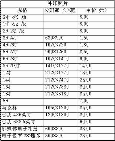 春天到了,有数码相机的朋友一定拍了不少照片,如何把它们冲洗出来呢?在大城市的朋友,自然可以去当地的数码冲印店冲洗,但是一些中、小城市的朋友就没那么方便了。不过在网络如此发达的今天,我们可以选择在网上冲洗,享受足不出户即可冲印照片的乐趣。你如果到网上溜溜,可以发现有许多网站提供冲洗服务,比如到福建热线网上冲印店(http://photo.fjii.com)。价格如下表。下面就和我一起到福建热线网上冲印店去感受快乐的冲印之旅吧。