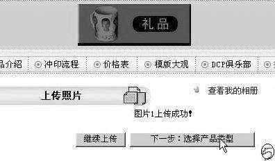 3.选择服务和冲洗规格。上传完所有待洗照片后,单击“下一步:选择产品类型”如图6。