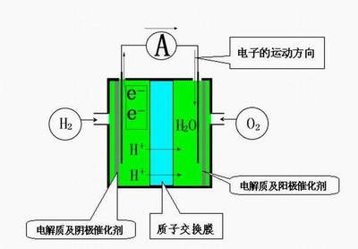 (2)氢离子穿过电解质(质子交换膜)到达阴极;无法穿过电解质的电子则通过外电路到达阴极。电子在外电路形成电流,通过适当连接向负载输出电能。