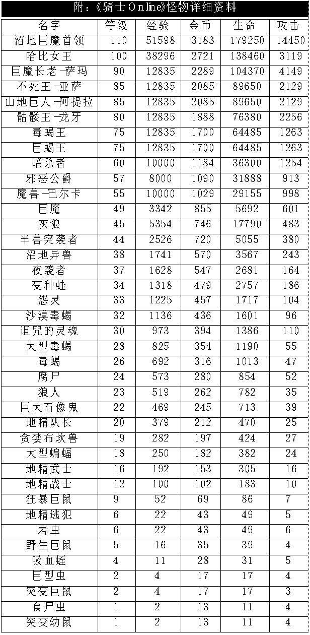 首先要说明的是,在《骑士Online》这款提倡合作的游戏里,组队升级是重要和必需的。我们没有必要再去详细说明哪个等级阶段需要在哪些地方练功升级,只是针对游戏中一些重要的技巧来进行研究。