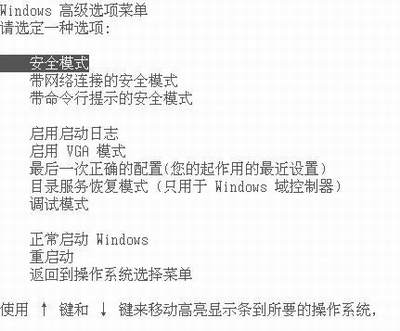 那么怎么才能看到并使用这个选项菜单呢?同其他Windows操作系统一样,在Windows XP中可以在系统刚刚自检后或者在出现Windows XP操作系统选择菜单时(如果安装了多个操作系统)按下F8键,我们就会看到这个“Windows 高级选项菜单”,其中包括很多菜单选项,如图2所示。通过键盘上的方向键可以选择你要启动的模式,确定后按回车键即可。