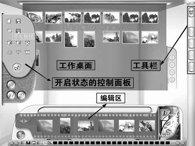 1.随着程序的首次打开,同时也会打开一个“制作向导”对话框,选 “新建演示文稿”项。点击“下一步”,在弹出对话框中选择要保存新建文稿的路径,并为文稿命名。继续点“下一步”,这时会出现“打开媒体”对话框,在该对话框中选择“将多媒体文件导入魅力四射桌面”项,点击“开始导入”按钮,找到事先准备好的图片素材。再次点击“下一步”,将打开“播放方式”对话框。在对话框中有两种播放方式,手动和自动播放,这里我们选择手动播放。继续“下一步”,在“背景音乐”对话框,单击“浏览”按钮找到准备好的音乐文件,最后一次点击“下一步”将打开“完成”对话框,点击“完成”按钮之后,程序将会把刚才选择的素材加入到工作桌面和编辑区中。