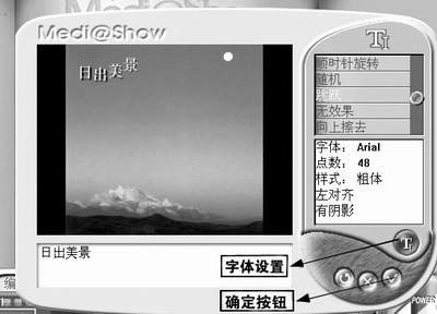 3.在“工具栏”中点击“编辑文字”按钮,打开“编辑文字”窗口(图4)。在窗口中的文本框中输入图片的说明文字,然后点击窗口中的“设置字体”按钮,在打开的对话框中设置好文字的字体、型号和颜色并确定。回到“编辑文字”窗口中选择一种文字显示特效,在预览窗口中将可以预览其效果,选定之后点“确定”即可。