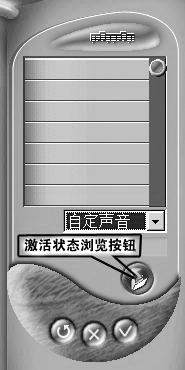 4.下面我们来给图片加入声音效果(注意:如果刚才你在向导中已经插入了声音文件,这里可略过此步)。单击“工具栏”中的“编辑声音”按钮,打开“编辑声音”窗口(图5)。在窗口中点击向下箭头,在其下拉菜单中选择“自定声音”命令,这时“浏览自定声音”按钮将被激活,点击它,将会打开“浏览”对话框,在对话框中选择好声音文件返回到“编辑声音”窗口并点击“确定”。
