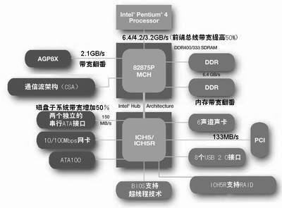 4月14日,英特尔发布了新一代支持800MHz FSB的P4芯片组Canterwood(产品型号为i875P),并会在5月下旬的时候,发布开发代号为Springdale(产品型号为i865PE、i865G、i865P)的芯片组。Canterwood和Springdale支持超线程、串行ATA(Serial ATA)、AGP 8×、8个USB 2.0设备、双通道DDR(Dual Channel DDR400)、增强的“Intel Extreme Graphics”技术和千兆以太网。