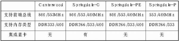 笔者这里把Canterwood和Springdale芯片组的差异作一个简单的对比(见表)。