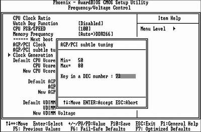By subtle tuning Item:启用AGP/PCI总线频率锁定功能,同时激活AGP/PCI总线频率区域锁定调节。