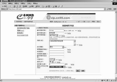 在网站首页,用注册的E-mail与密码进入用户管理中心,随后点击 “创办邮件列表”进入“创建邮件列表”页面(图1),按实际要求填写即可,如有不明白的填写项目,可点击相应的“help”来获取解释。完成填写后点击“确定”按钮,一份属于自己的电子杂志就诞生了!