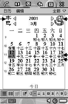 中文版P802的日历功能与英文版有所不同,图8就是中文版日历的界面,我们可以看到,它完全按照中国人的习惯进行日期的显示,既有农历日期,又有生肖图案。