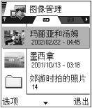 使用“照相机”应用程序(图15)拍摄照片后,照片将自动储存在“图像管理”应用程序(图16)中,在该应用程序中重新命名相片或将它们分类保存在不同的文件夹内,还可以通过多媒体信息、电子邮件附件、蓝牙或红外线连接将照片发给朋友。照相机生成的照片均为JPEG格式。