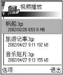 摄像机:是3650较7650新增的一项功能,使用摄像机,我们可以录制视频片段、播放储存在手机或储存卡(MMC)中的视频片段(图17)。