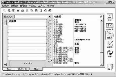 1.选中联系人图标(图14),程序界面的左边是联系人卡片的列表,右边显示了卡片的详细内容。