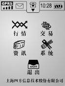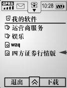 M388支持JAVA程序,因此可以方便地扩充它的功能,我们可以下载读书软件、游戏、电子词典等等。这里给大家介绍一个需要在线使用的应用软件,即专门用来进行股票交易的四方证券移动炒股系统(能够进行无线股票交易的软件很多,笔者以此软件来介绍M388应用软件的用法。有关该软件的详细资料,大家可以登录http://www.sifang.net进行查阅)。它是上海四方信息技术股份有限公司的产品。它的使用方法是: