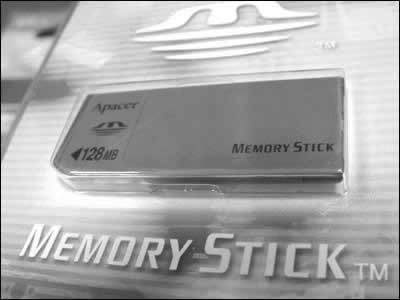 不过今天我们又得到一个强劲消息:宇瞻(APACER)生产的兼容SONY记忆棒产品价格大幅度下调,128MB容量的记忆棒售价由原来的470元左右一下猛降到380元,部分地区甚至给出了360元的超低价!而这一价格已经比较接近128MB的CF卡了──目前市面上SANDISK的128MB CF卡实际成交价格在315元左右。