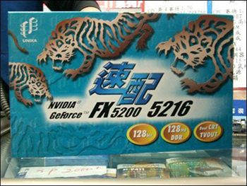 UNIKA推出了一款价格为749元的GeForce FX5200显卡速配5216,它采用了两个CRT输出,同样具有6ns 128bit 128MB DDR显存。这应该是目前市面上价格最低的具有128bit DDR显存的GeForce FX5200显卡。