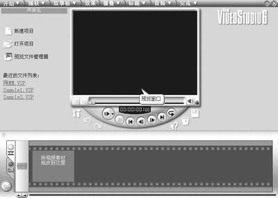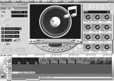 运行《会声会影6》,出现图2所示的主界面。顶端有8个页面,它们的排列顺序体现了对一个视频进行编辑的操作顺序。